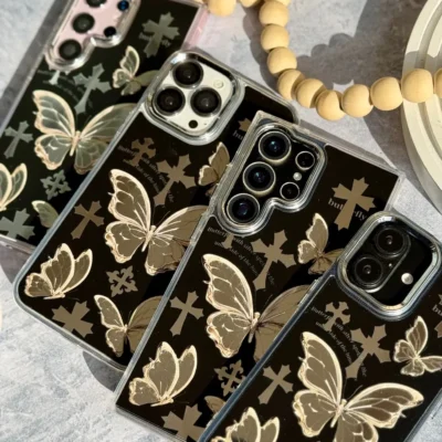 قاب Dior آینه ای دور نگین با آویز قلبی پاپیونی (کدC1989)